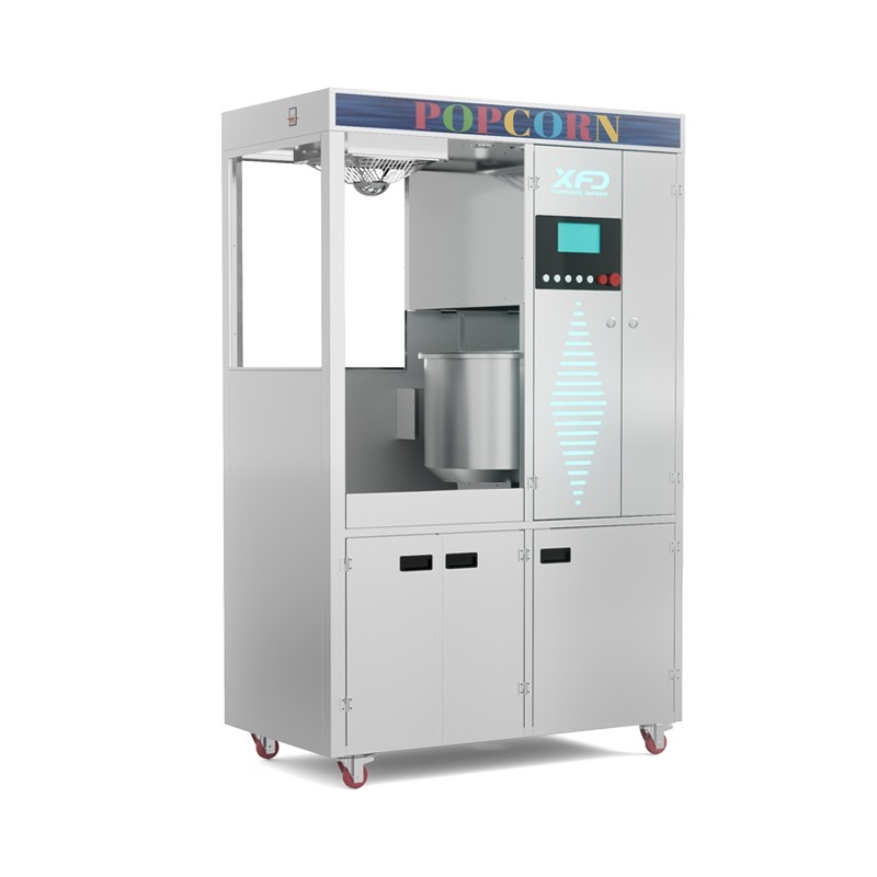 Fully auto popcorn machine can help cinemas to save labor, your staff can push the button and then leave, it will make a couple of kettles of popcorn automatically.